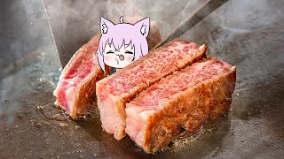 ステーキを焼く猫です