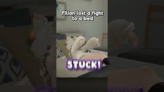 Filian got stuck on the bed